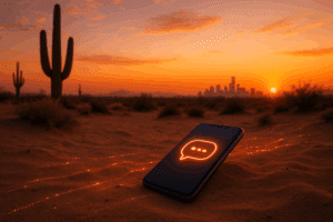 Desert Sunrise, Digital Spark The sun climbs over Camelback Mountain, and another Phoenix morning begins. As heat ripples across the valley, something else hums beneath